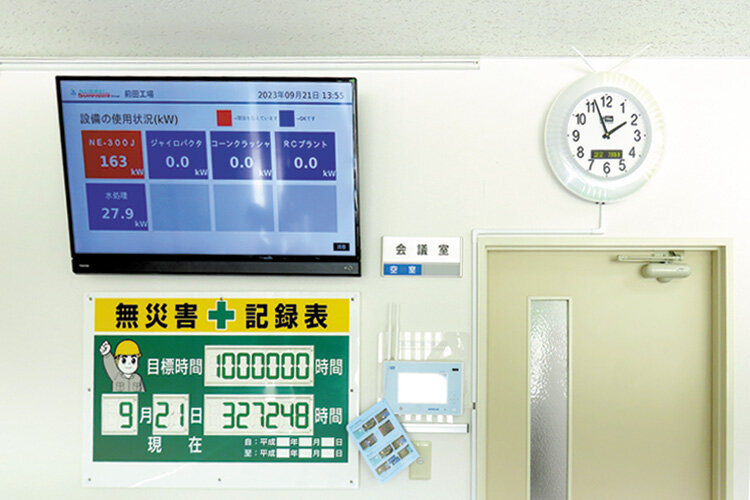 同社では、電気の市場価格が0.01円となる時間など再生可能エネルギーが多く発生するタイミングで「上げデマンドレスポンス」を行い、砕石など電気を多く使う業務を積極的に実施する。毎日正午ごろに日本テクノの「環境市場」サイトで卸電力市場価格を確認。市場価格が上がった場合は設備メンテナンスや資材リサイクルなど、プラントを稼働しない業務を行うことで効率的に電気を使用している。
